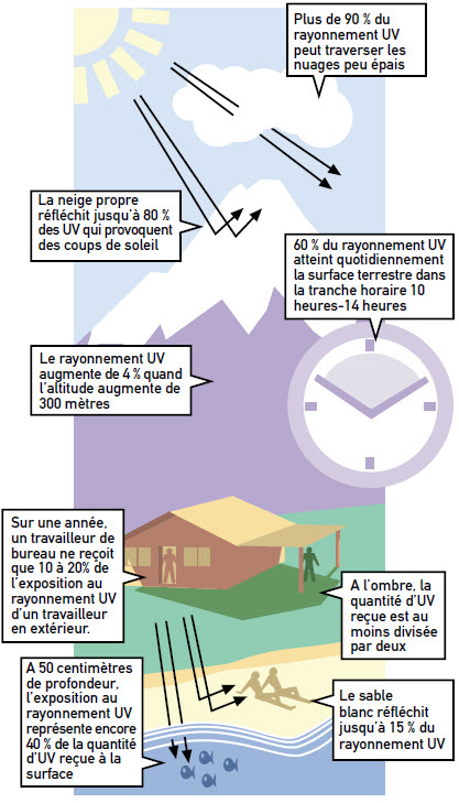 Plus le soleil est haut dans le ciel, plus le rayonnement UV