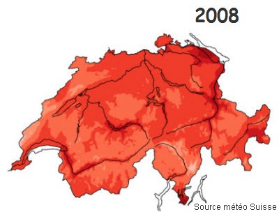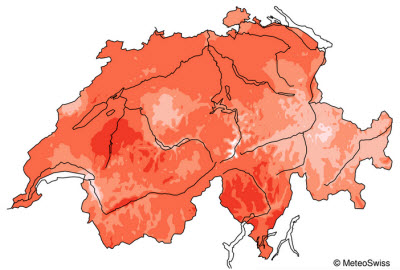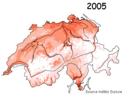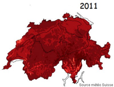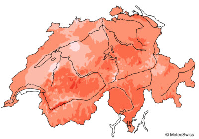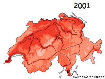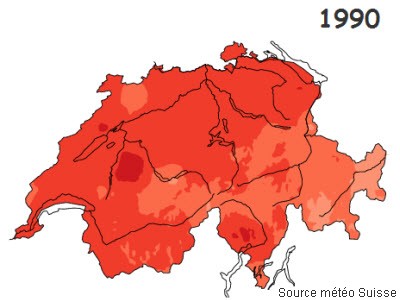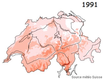 en suisse par rapport à la norme, en °C.