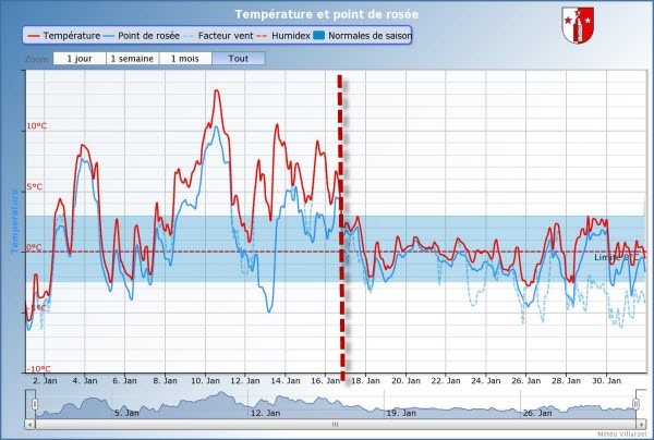 température moyenne de 0.1 °C, soit 1.2 °C en dessous