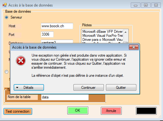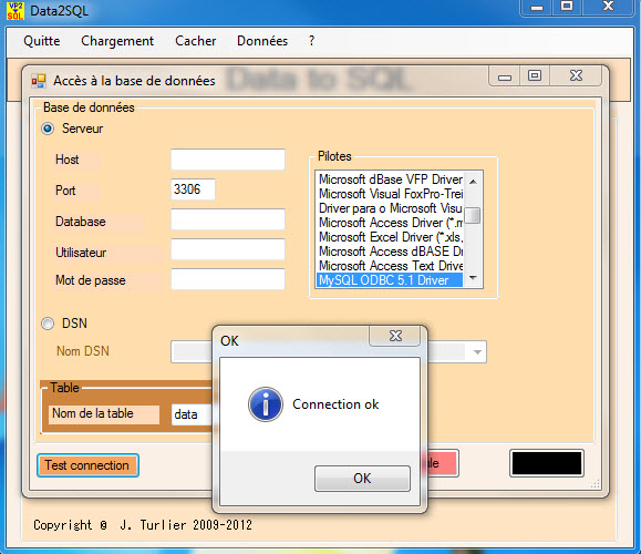 Si ha completado todos los campos, debe disponer de una ventana que se abre con el mensaje "Connection ok", si éste no es el caso, eche un vistazo a todos los campos.