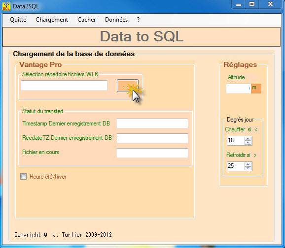 Para Davis Vantage y Vue, que generan archivos xxx.wlk, simplemente indicar el directorio de la estación donde se almacenan los archivos, en general, es: C: \ WeatherLink \nombre de la estación el programa se encargará de transferir los datos en orden, del más antiguo al más reciente..