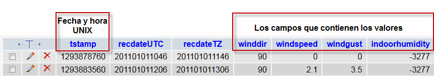 En la tabla data seleccionamos el campo tstamp; ésta es