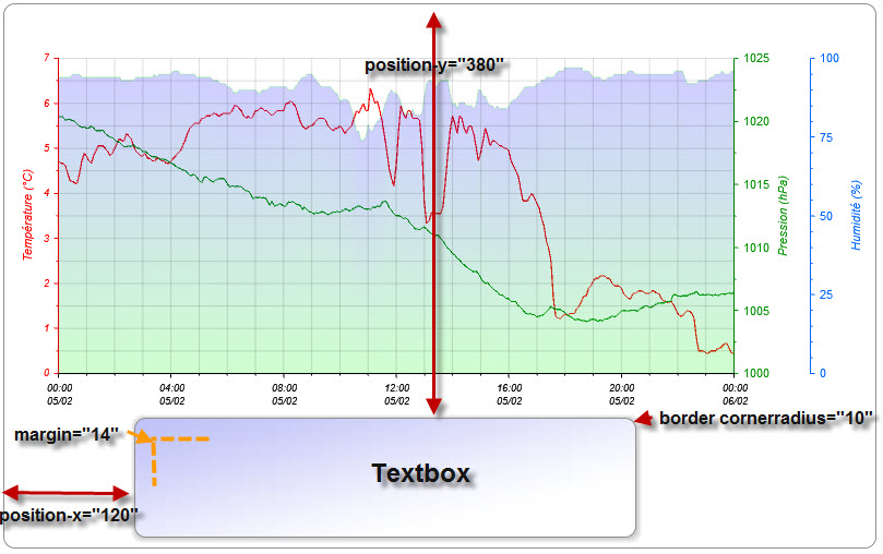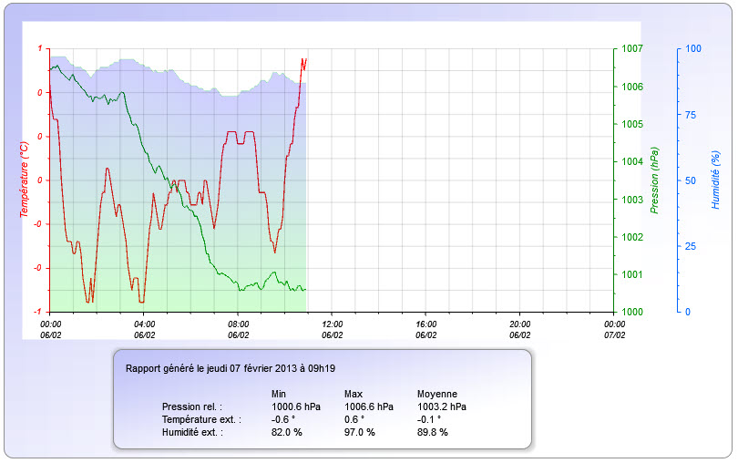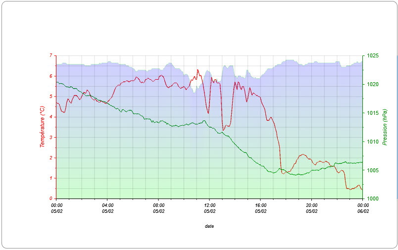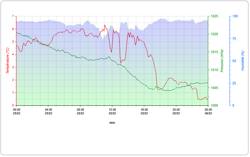 <data> <outdoor_temperature axisbind="y1axis" legend="Temperature ext." color1="FFFF0000" thick="1.2" hidelegend="1"/> <relative_pressure axisbind="y2axis" legend="Pression rel." color1="FF009000" thick="1.2" hidelegend="1"/> <outdoor_humidity axisbind="y3axis" legend="Humidité extérieure" color1="3000FF00" thick="1.2" hidelegend="1"/> <outdoor_humidity axisbind="y3axis" legend="Humidité extérieure" color1="3000FF00" color2="300000FF" filled="1" hidelegend="1"/> </data>