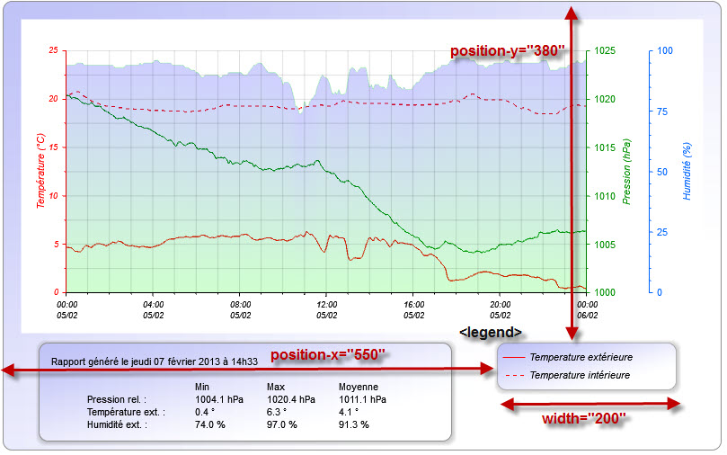 <outdoor_temperature axisbind="y1axis" legend="Temperature ext." color1="FFFF0000" thick="1.2" hidelegend="0"/> <indoor_temperature axisbind="y1axis" legend="Temperature int." color1="FFFF0000" thick="1.2" hidelegend="0" pattern="F0F0F0F0"/>