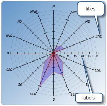 <axis color="FF000000" grid="1" autoscale="1" min="0" max="0"> <titles text="E;ENE;NE;NNE;N;NN0;N0;0N0;0;0S0;S0;SS0;S;SSE;SE;ESE"> <font color="FF000000" facename="Arial" size="14" weight="400" italic="1" /> </titles> <labels labelinterval="1" angle="0" format=".0" side="left" hide="0"> <font color="FF000000" facename="Arial" size="12" weight="400" italic="1" /> </labels> </axis>